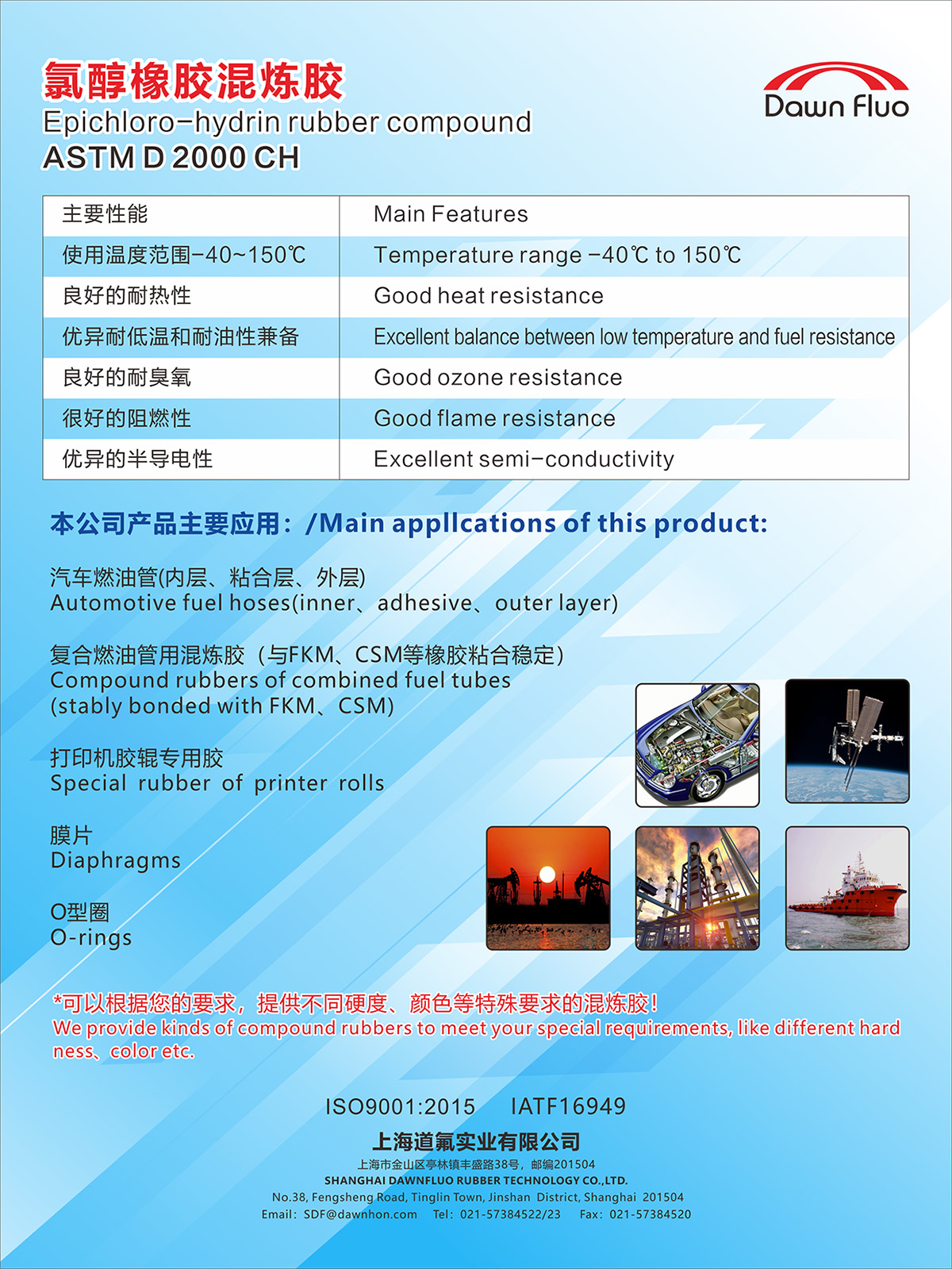 氯醇橡膠(ECO)是指?jìng)?cè)基上含有氯的聚醚型橡膠。它是由含有環(huán)氧基的環(huán)狀醚開環(huán)聚合而制成的高分子彈性體,又叫氯醚橡膠。依據(jù)其組成,氯醇橡膠又可分為環(huán)氧氯丙烷均聚氯醇膠(CO)、環(huán)氧氯丙烷與環(huán)氧乙烷二元共聚氯醇膠(ECO)。氯醇橡膠的分子鏈具有較好的柔順性,因而其耐寒性良好;又因?yàn)榉肿渔溨泻新燃谆鶚O性基團(tuán),使其有相當(dāng)好的耐熱性,所以氯醇橡膠的特點(diǎn)是兼有耐寒性和耐油性最好的橡膠之一。